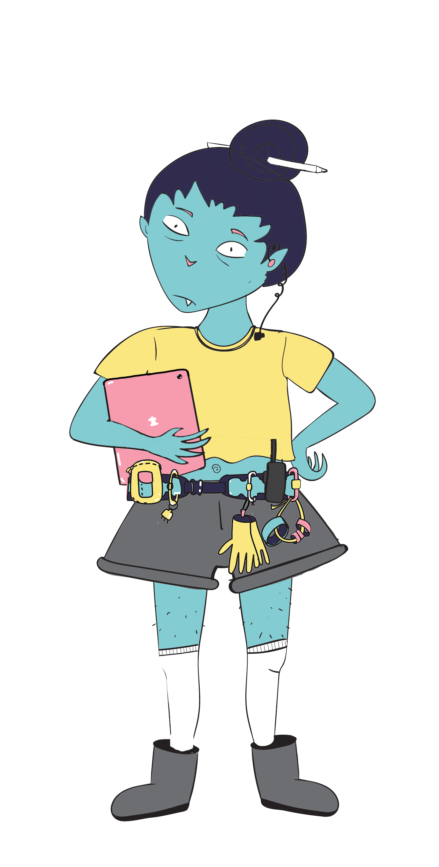 I drew a character. I put it inside a rectangle, sometimes having a shape it is better than a blanc page. I vectoriced it and then I animated.